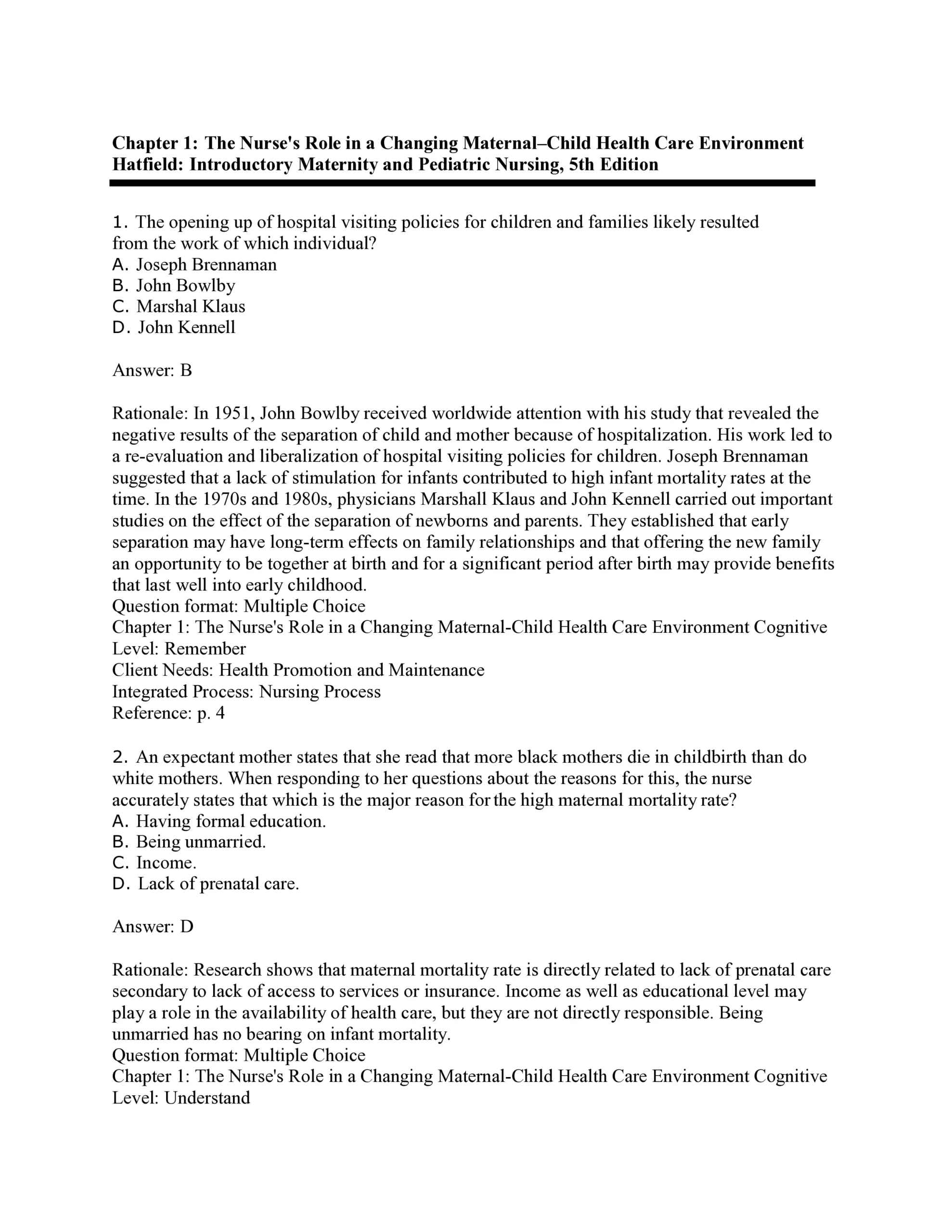 Introductory Maternity & Pediatric Nursing 5th Edition Test Bank | Hatfield & Kincheloe | ISBN 9781975163785