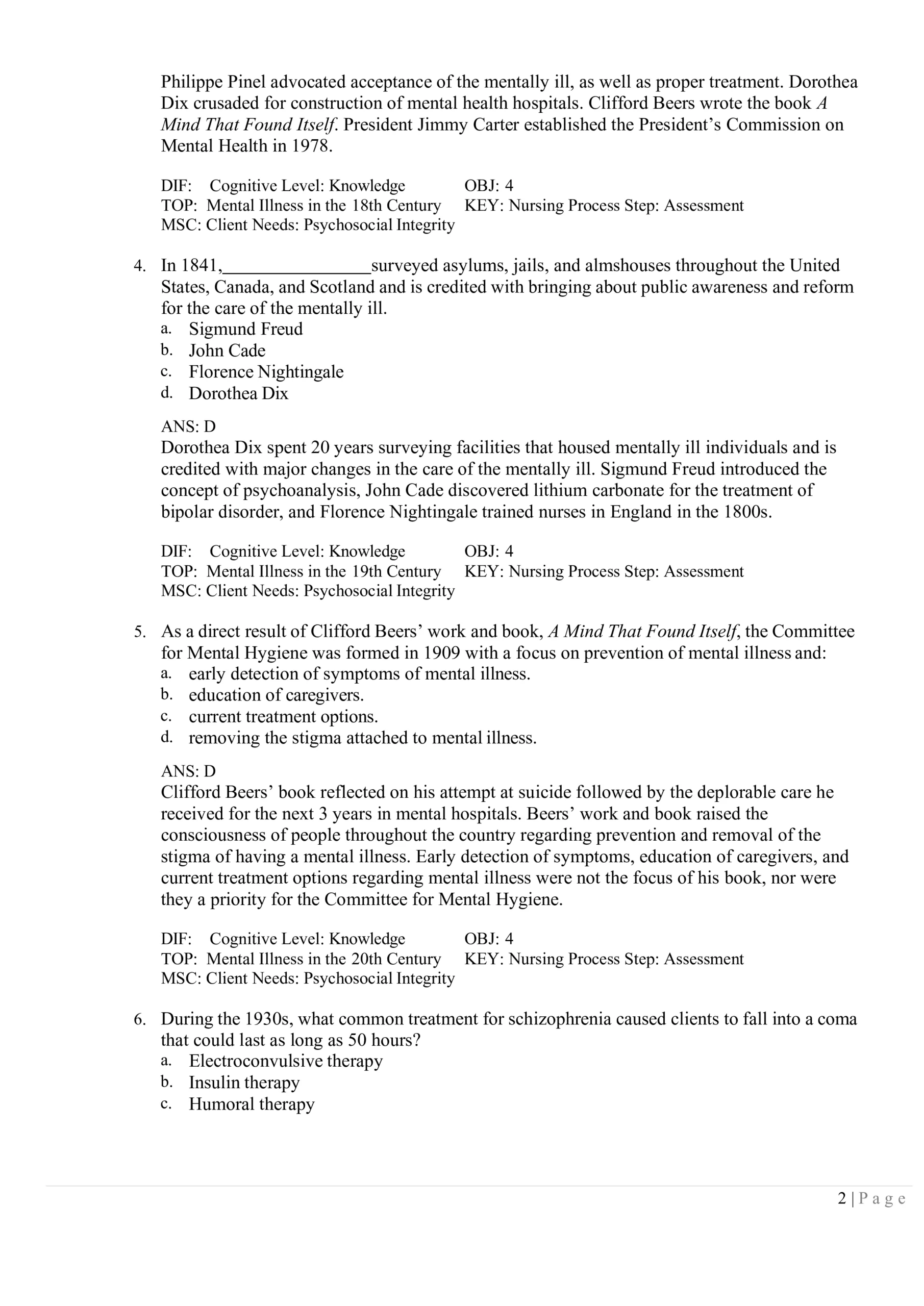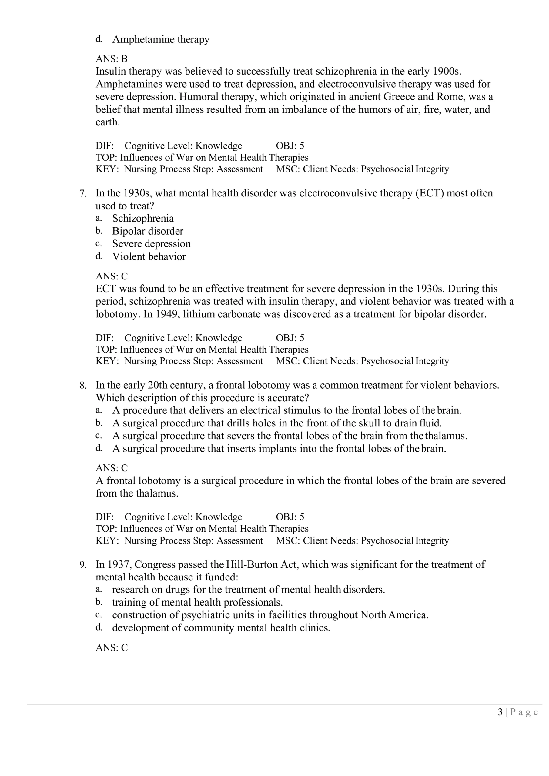 Psychiatric / Mental Health Test Bank