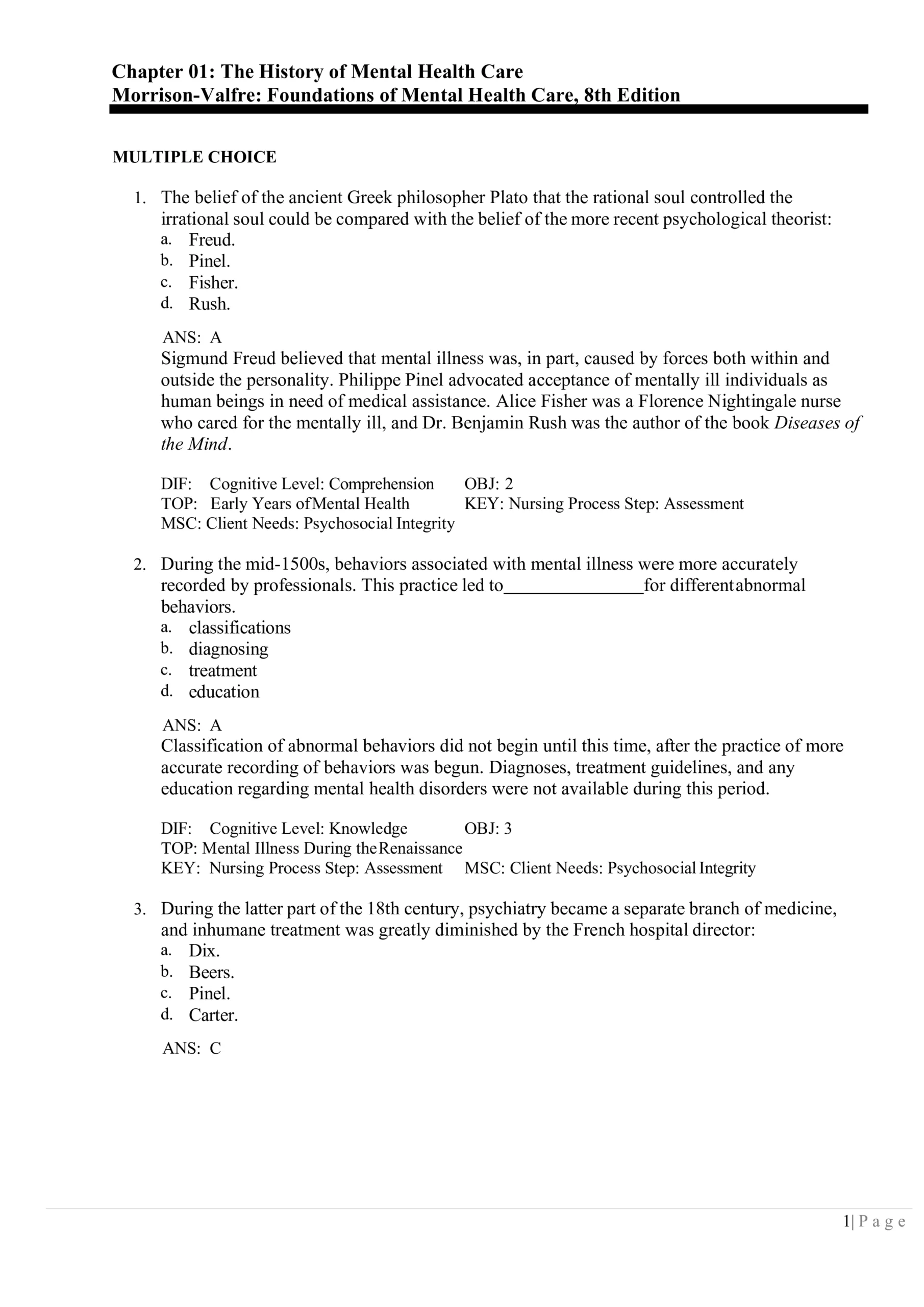 Test Bank for Foundations of Mental Health Care (8th Edition) – Morrison-Valfre | ISBN: 9780323810296